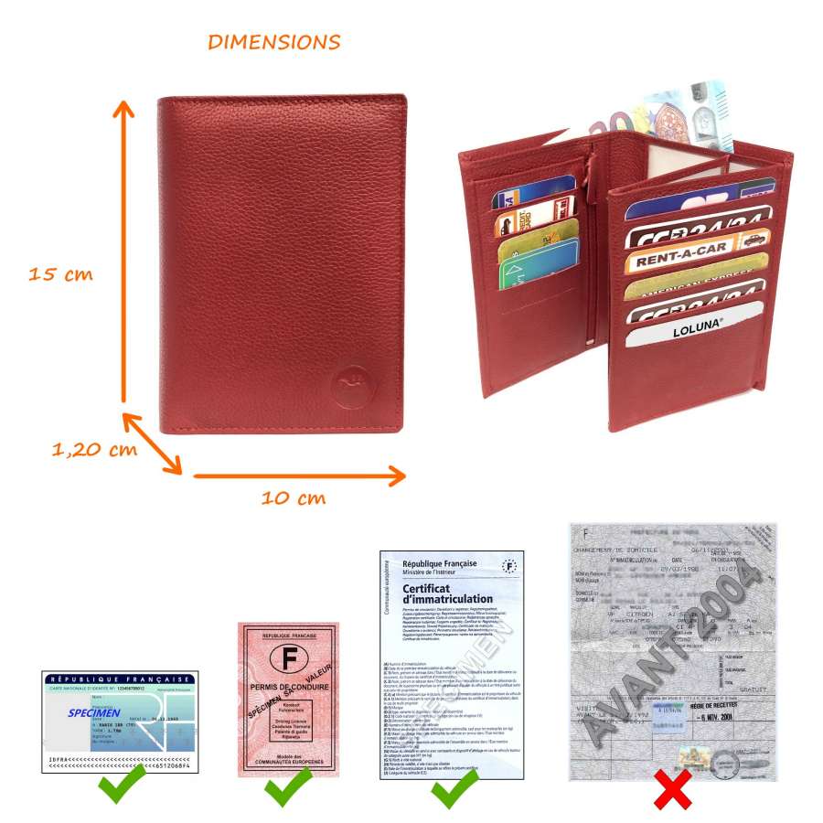 Mots Clés : portefeuilles, voiture, certificat, immatriculation, porte monnaie, souple, identite, carte grise