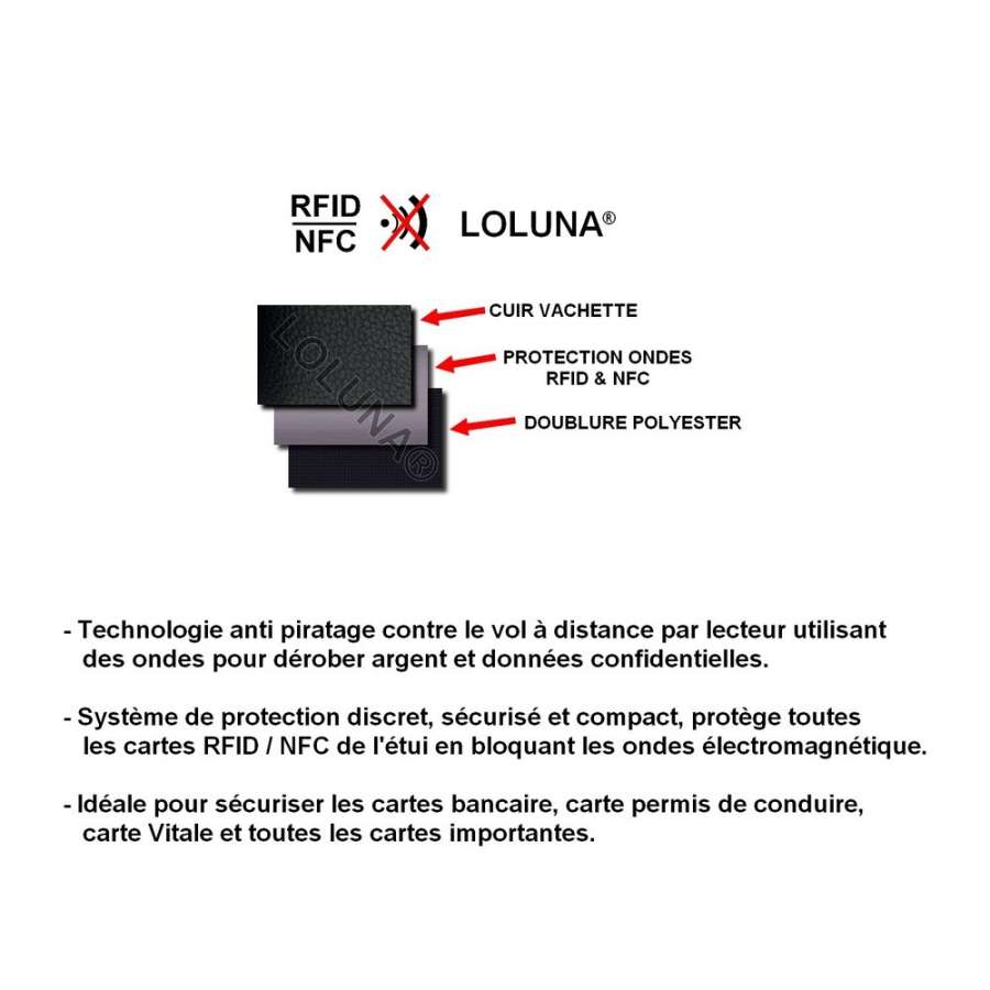 Mots Clés : rfid, nfc, anti, vol, piratage, securise, portefeuilles, voiture, certificat, immatriculation, porte monnaie, couleur, identite, carte grise