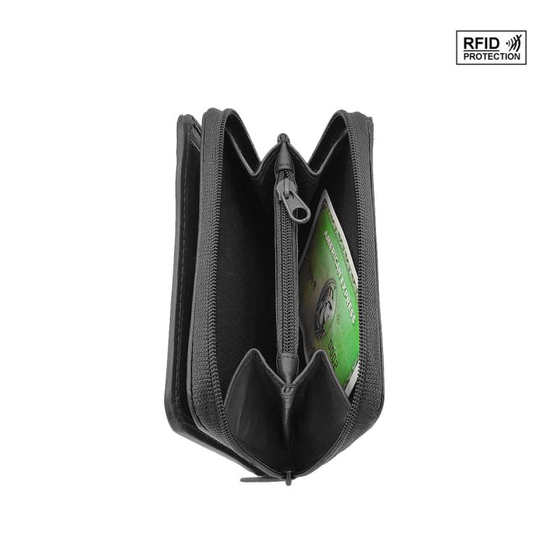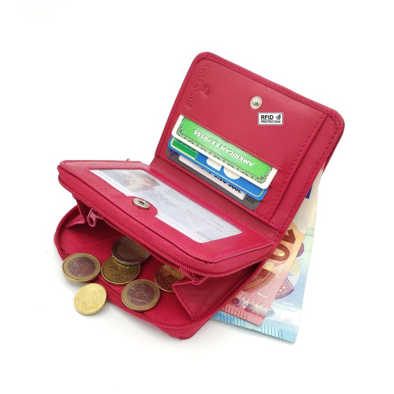 Porte-monnaie fermeture hermétique en cuir Protection RFID Blocage, format identité, idéal pour placer permis, cartes, billet et monnaie