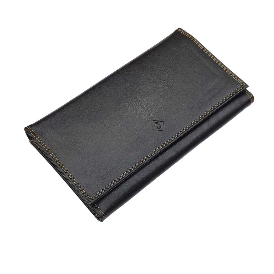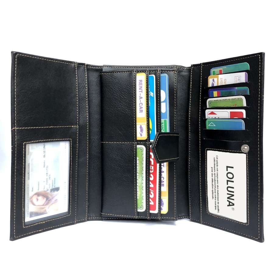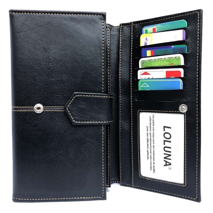 Porte-monnaie multi fonction, fabriqué en simili cuir robuste, permet de ranger les billets, documents, cartes, monnaies et chéquier à talon haut.