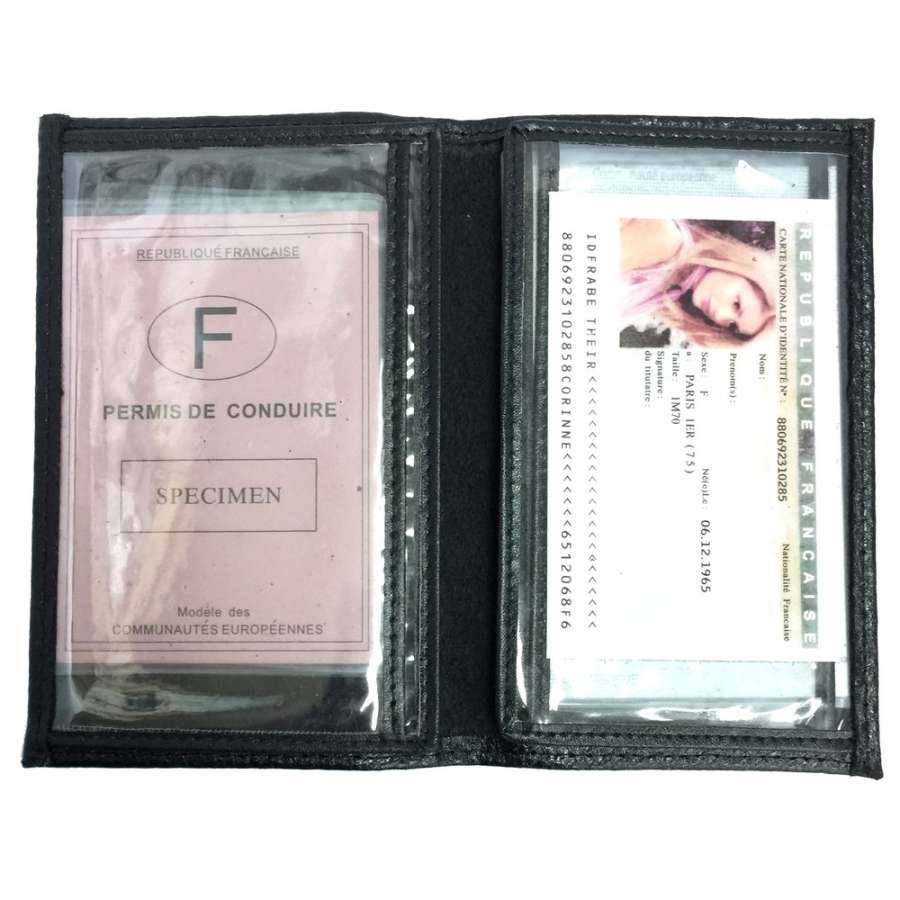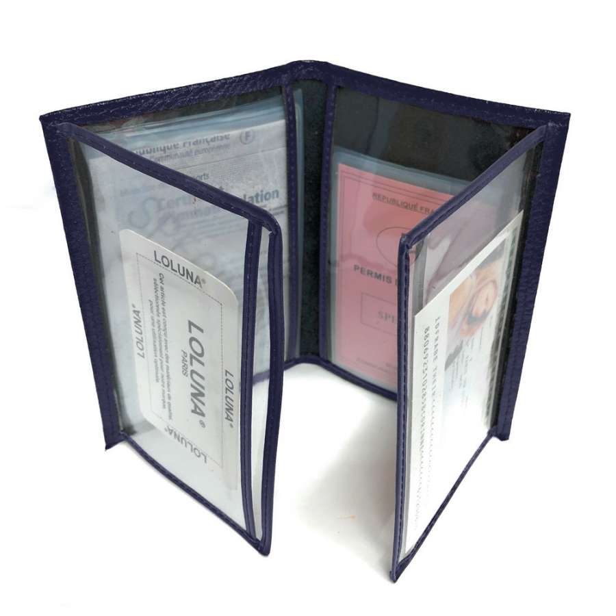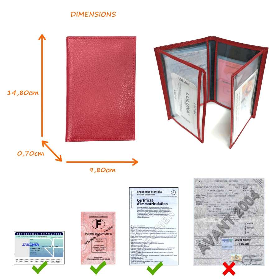Porte papiers voiture carte grise, permis, identité, assurance, 4 volets opaques en cuir / étui RFID