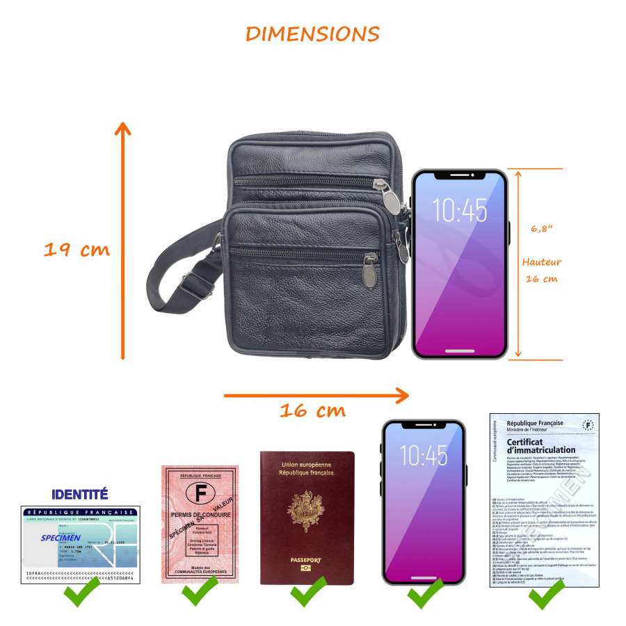 Petit Sac à Bandoulière Homme, en Cuir Verticale, pour Portefeuille, Clé et Téléphone toute taille petit ou grand