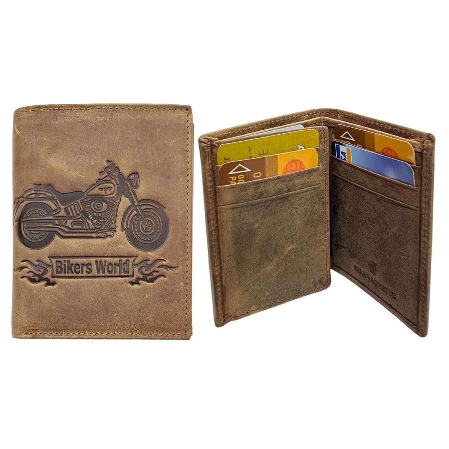 Porte-Cartes en Cuir Motif MOTO, Portefeuille Compact Multi-Poches, Protection RFID, idée cadeau fête, anniversaire
