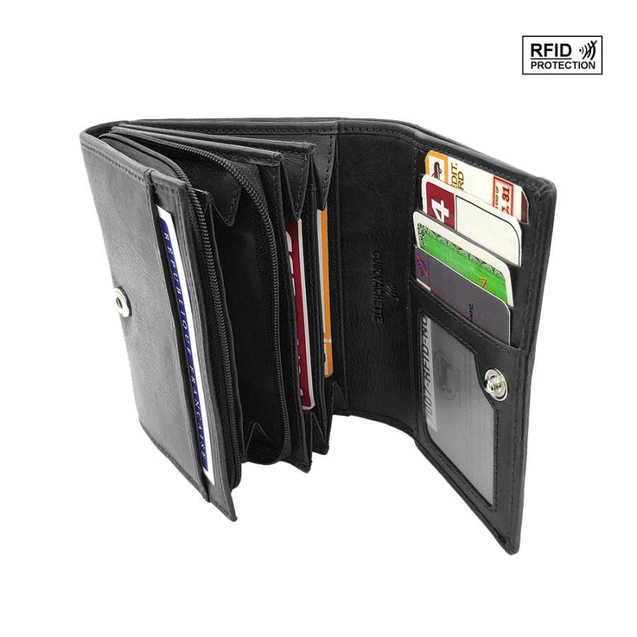 Porte-monnaie femme cuir véritable, RFID Blocage, multi compartiments, portefeuille, compagnon, pour 12 cartes, billet, monnaie, identité et permis