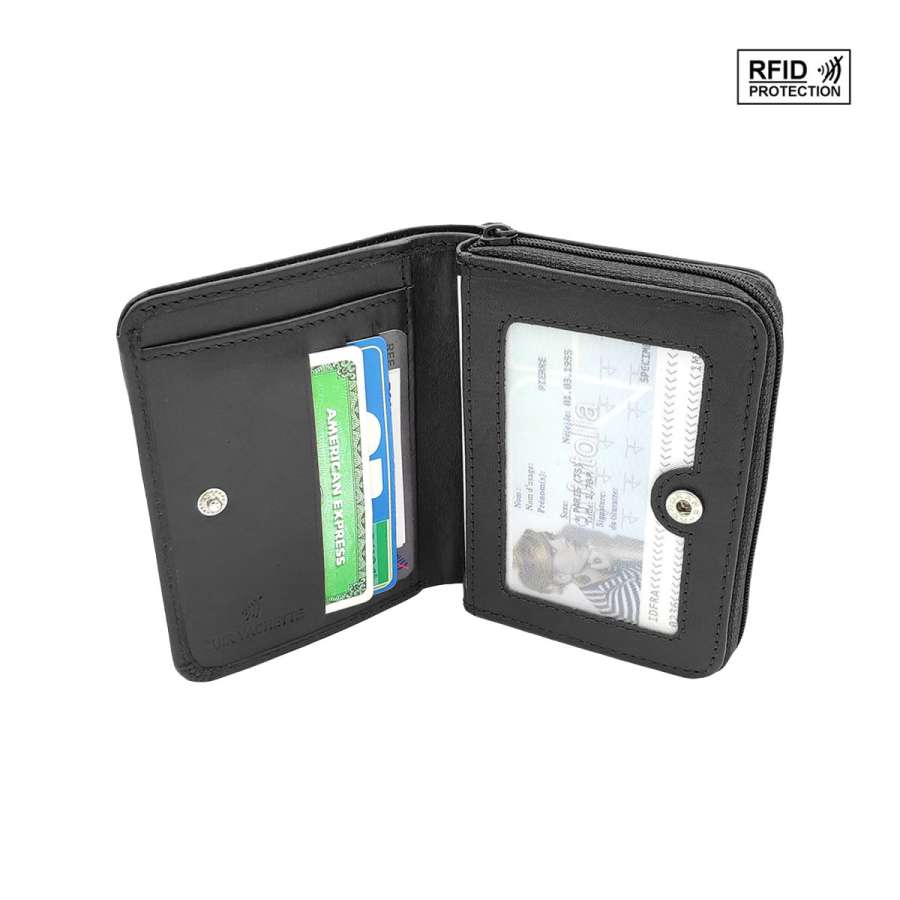 Porte-monnaie fermeture hermétique en cuir Protection RFID Blocage, format identité, idéal pour placer permis, cartes, billet et monnaie